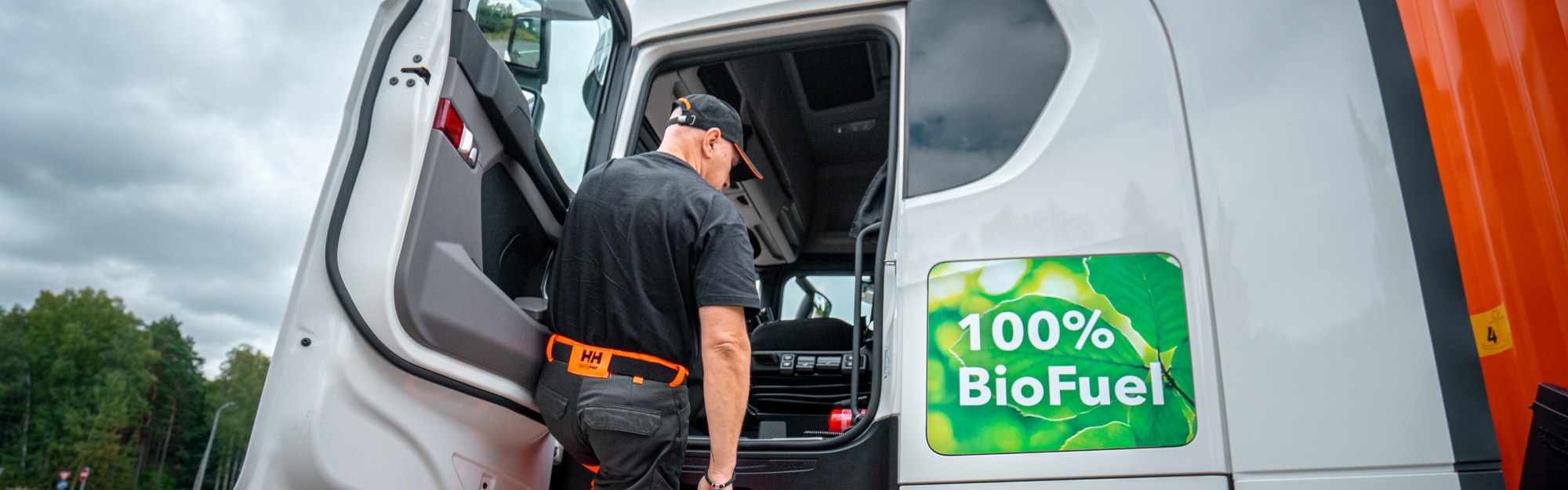 Jaunas, labi apkoptas kravas automašīnas, kas darbojas ar biodegvielu